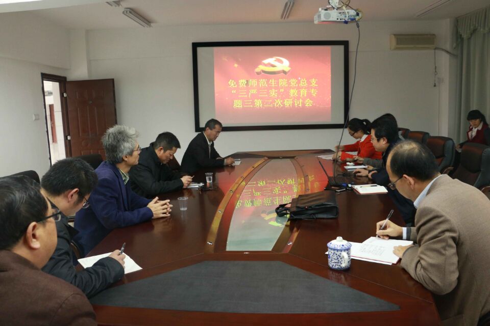根据江西师大党委关于“三严三实”专题教育学习的部署与要求,免费师范生院党总支于11月17日下午在国家级教师教育实验教学示范中心会议室召开“三严三实”专题教育专题三第二次研讨会。免费师范生院党总支书记熊吉生以《严以修身做表率,真抓实干促发展》为题进行主题发言。免费师范生院党总支全体党员干部参加此次会议研讨。