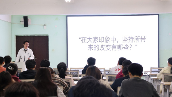 第一期《阿甘正传》以“积极力量”为起点,主讲人通过“坚持所带来的改变有哪些?”引导同学们感受“小坚持”积累“大改变”。从学习中攻克一道难题的成就感,到生活里坚持一项爱好的收获,同学们结合自身经历各抒己见,在彼此的故事中感受到“日积月累”的力量。